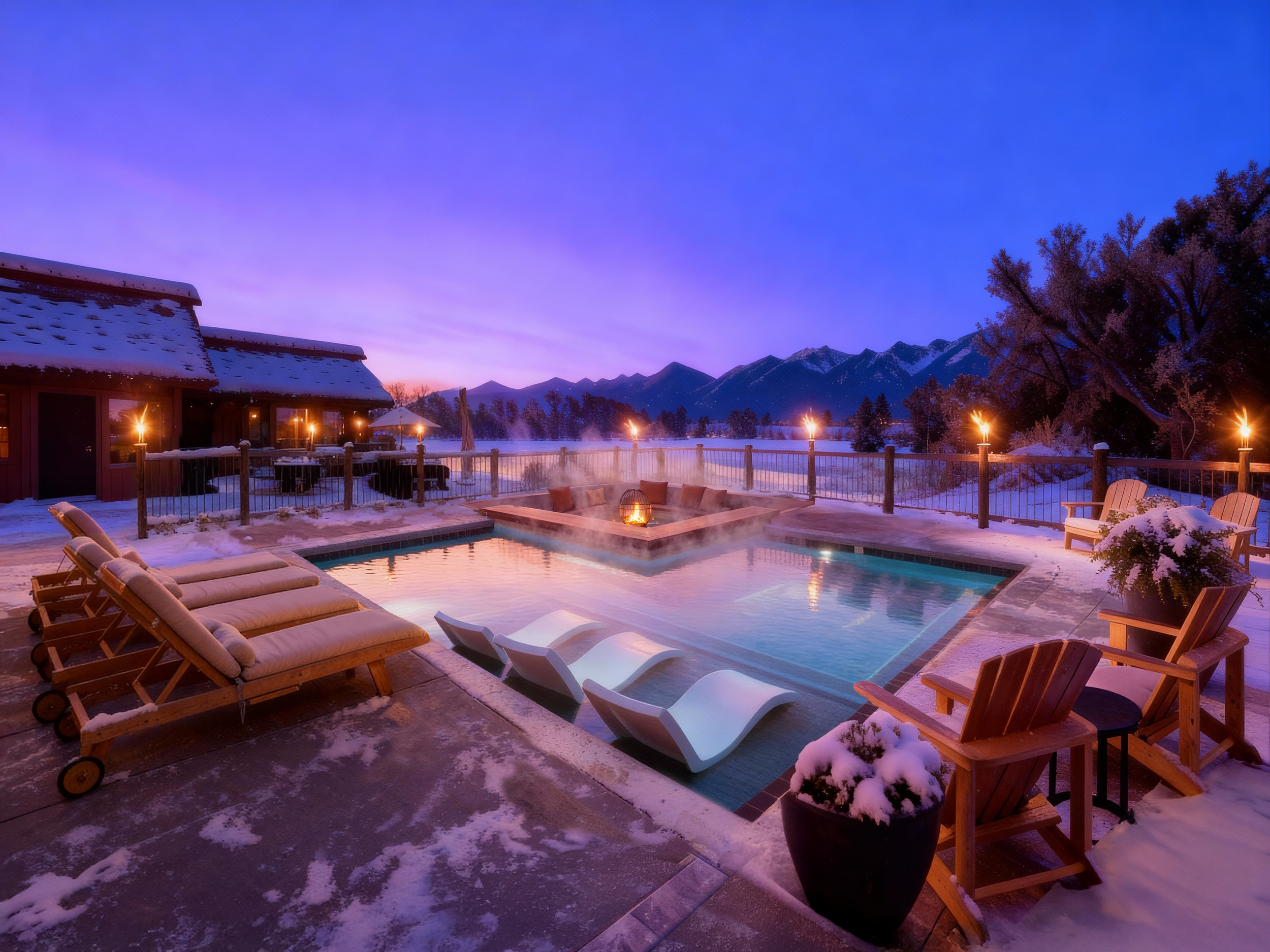 The saltwater pool stays comfortably warm year-round, ranging between 90–104°F depending on the weather. On cooler days, it’s hotter and more soothing; on warmer days, it’s slightly lower for a refreshing soak.